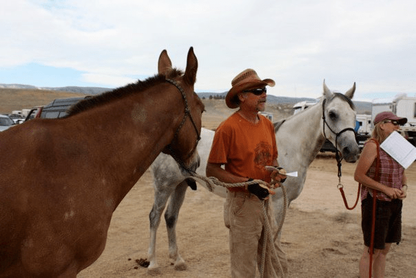 Terry and Lumpy did have a great ride at Sunriver, as did Max and Junior, after suffering a sad pull at the Grizzly Mtn ride in April. So, wow, this Big Horn thing, it was really going to happen for me! I spent the next three weeks in a frenzy, getting Lumpy’s coggins and health papers together, arranging for him to be shod to his best advantage for the ride and worrying constantly if he was going to be able to handle the road trip. Lumpy has been a special horse for us, but he’s not been without his challenges. When he gets to worrying about things, he gets this wrinkle above his nose and over his eyes. He gets what I call, The Stares. He’ll stand at his fence and just stare into space. He won’t eat or attempt to take care of himself. He just stares. Lumpy hadn’t had a case of The Stares all season though. He finished the 75 at Home on the Range and also Mt Adams. He also finished the 50 at Klickitat Trek and Sunriver. Each ride that he completed, he amazed me in a different way. Lumpy was a different horse this season than he’s ever been since he started the sport.